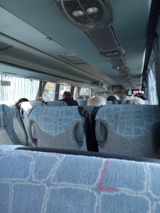 While waiting my turn to load my bags into the bus, I saw a young fella putting a bag in the storage area. He had thick, fuzzy, fingerless gloves and I wondered if he was the bag loader, but he left and went back to the boarding line so I figure nope…he’s a passenger.